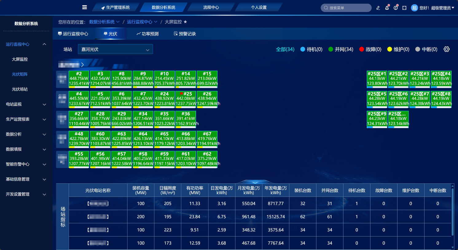 該系統(tǒng)支持組件級精細(xì)化監(jiān)視,通過CEP(復(fù)雜事件處理)引擎實(shí)現(xiàn)跨系統(tǒng)聯(lián)動,可主動識別低效組串、精準(zhǔn)定位隱裂或熱斑故障,將傳統(tǒng)“被動響應(yīng)”全面升級為“預(yù)測性維護(hù)”。項(xiàng)目運(yùn)行數(shù)據(jù)顯示,系統(tǒng)有效提升設(shè)備可用率20%以上,顯著減少非計(jì)劃停機(jī),并助力場站實(shí)現(xiàn)增發(fā)增效。
