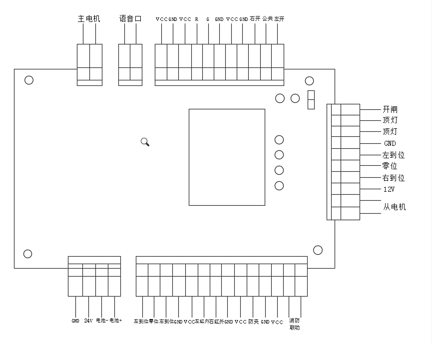 開閘 頂燈 頂燈 GND 左到位 零位 右到位 12V 從單機(jī) |